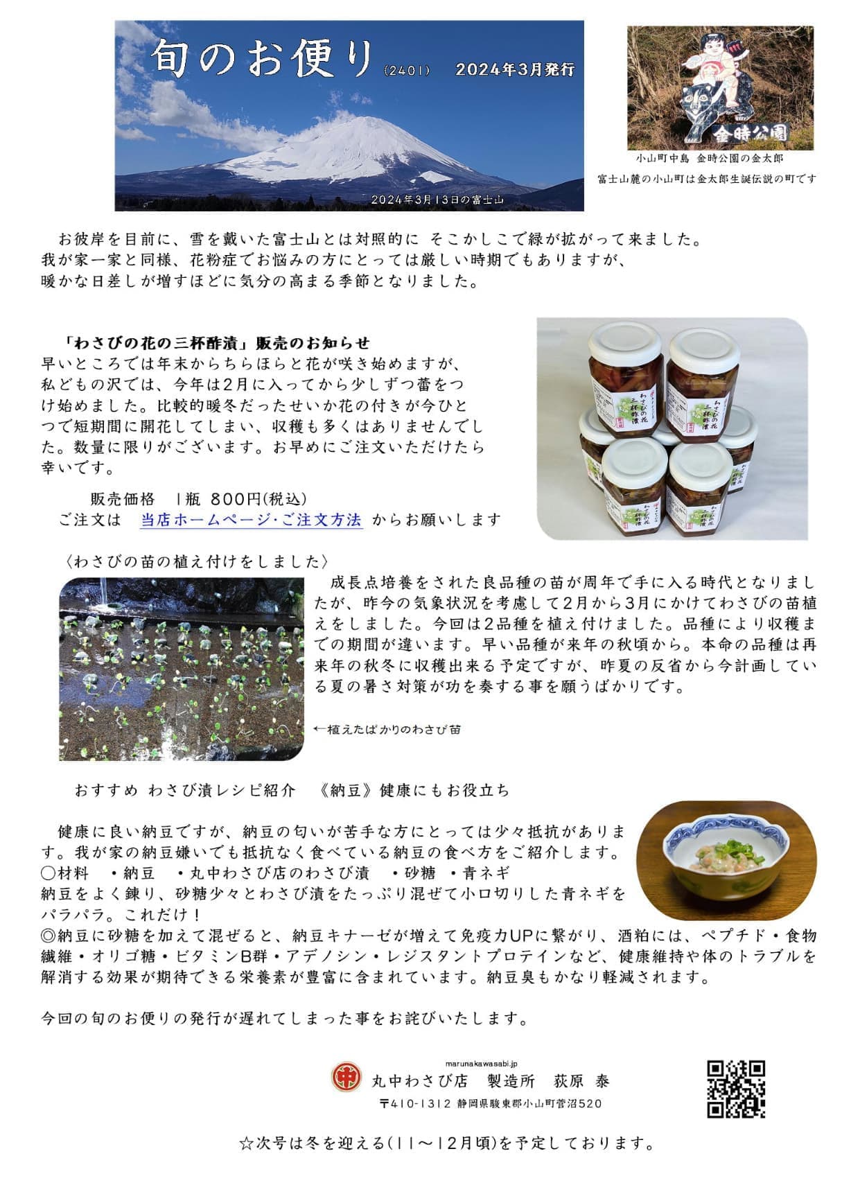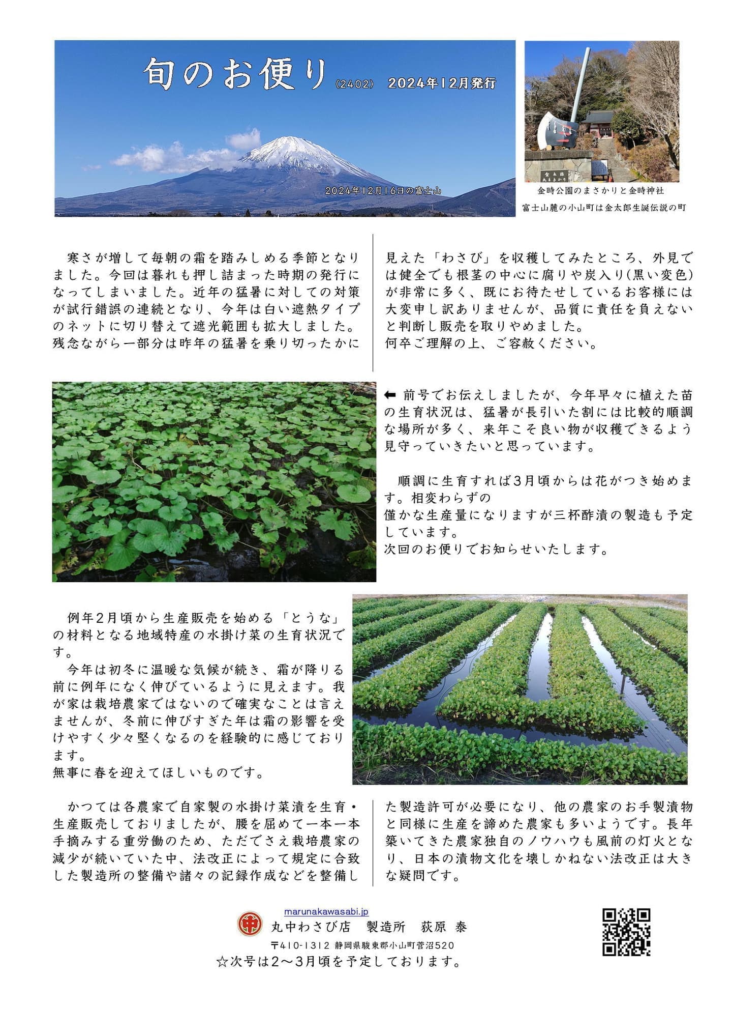 『旬のお便り』にご登録いただけますと、年間2~3回程度 季節限定商品等のご案内メールをメールマガジン形式でお届けいたします。発行済のメールマガジンは下記のリンクからご覧いただけます。