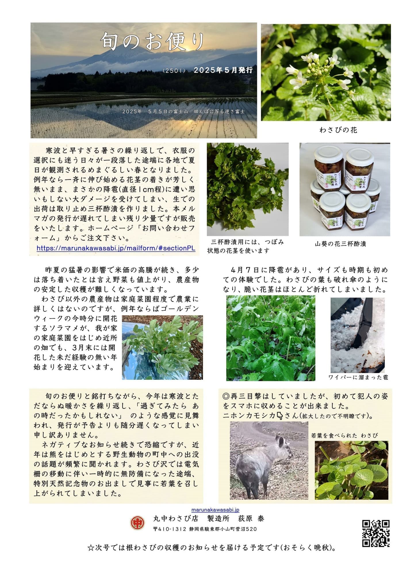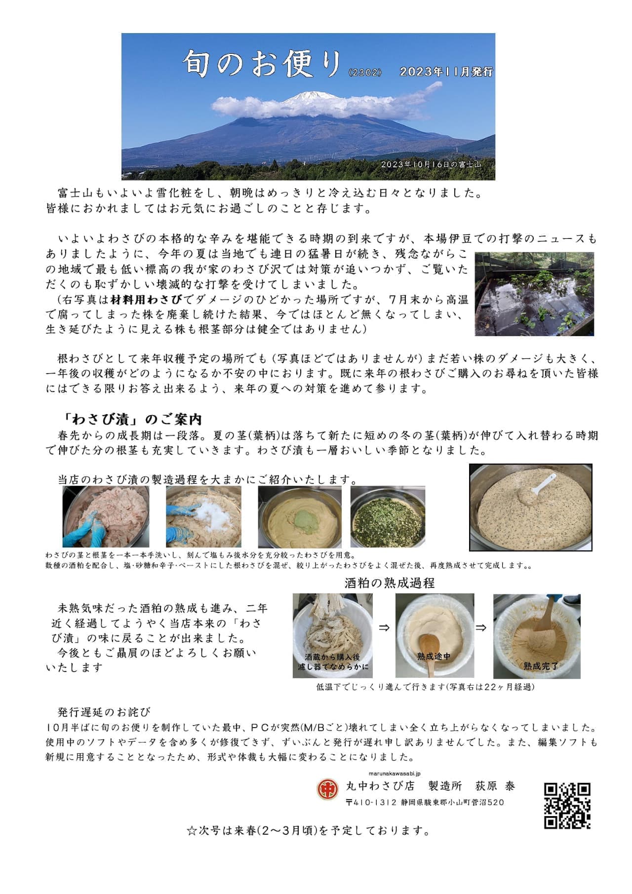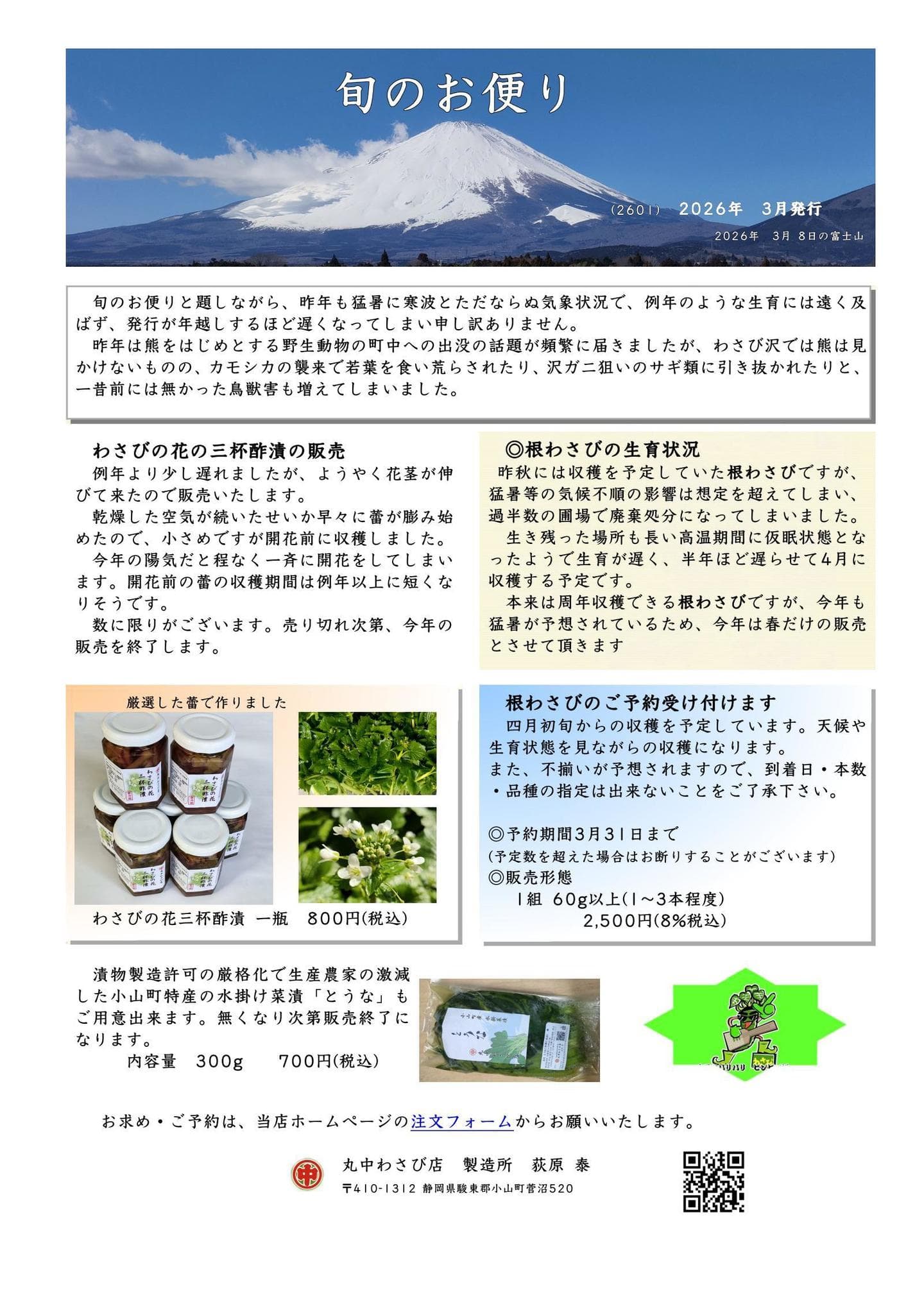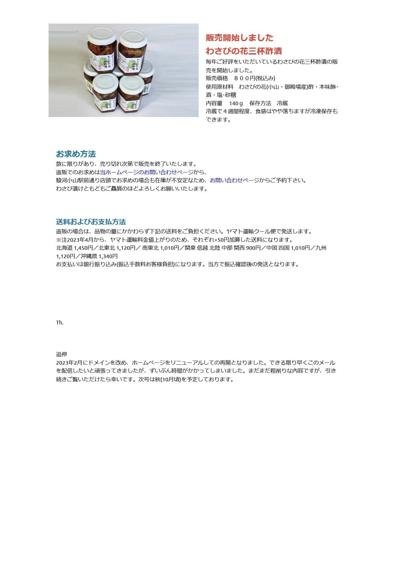 『旬のお便り』にご登録いただけますと、年間2~3回程度 季節限定商品等のご案内メールをメールマガジン形式でお届けいたします。発行済のメールマガジンは下記のリンクからご覧いただけます。